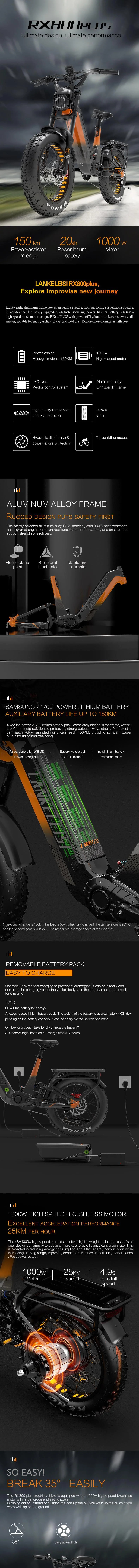 Home / E-BIKE / Lankeleisi RX800 Plus 1000W 20" Fatbike Full Suspension Electric Bike 48V 20Ah Samsung Battery SUV E-Bike