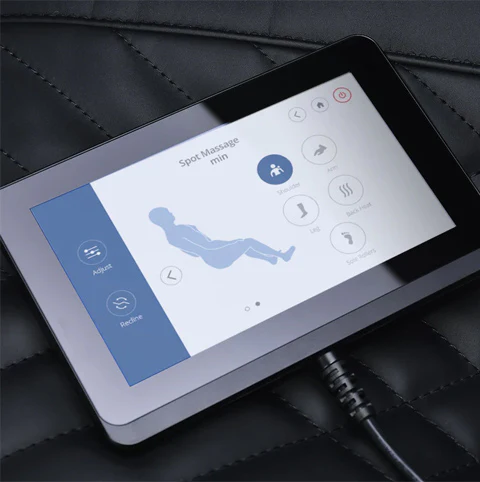 A controller sits in the right side of the armrest to give you quick and convenient access to power on/off. auto-programs. recline. and zero gravity.