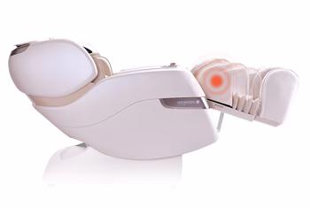 The Jpmedics Kumo is a categorical improvement in conventional massage chairs. It is the first of its kind to provide deep tissue. heated. spine-focused. human-like massages. The 4D Thermo rollers protrude 3 inches deep and travel 1.5 inches apart. to accurately massage the spine and specific acupuncture points. Heat is dispersed from the massage rollers themselves to simulate a real pair of warm hands massaging your body.