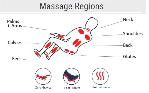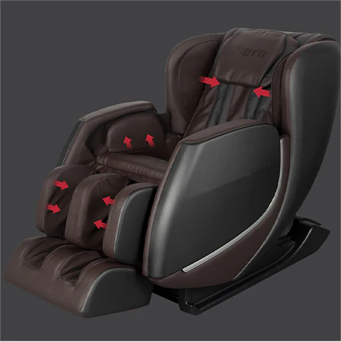 Advanced airbag compression massage mimics human hands. relieving tension in your shoulders. arms. and calfs.