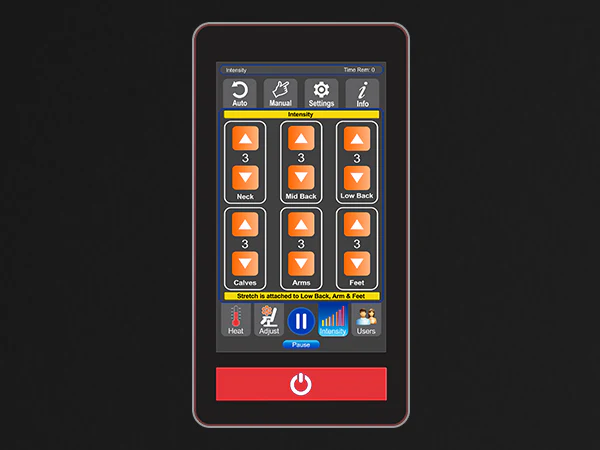 • Pause and Resume Button (for when the User needs to pause their massage)