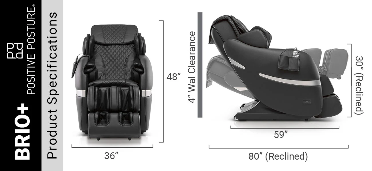 Take a vacation from your every day in the Positive Posture Brio+. Experience a true full-body massage from head to toe that delivers relaxing relief to areas ignored by other massage chairs. Programmed with ten expertly designed massage sessions. the Brio+ also offers hundreds of manual massage combinations to provide customized relief. Fastidiously designed and developed by the massage chair experts at Positive Posture. Brio+ is the finest massage chair in its class.