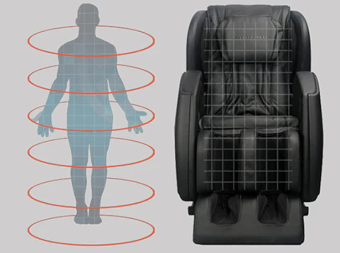 The L-Shaped track allows the massage robot to travel from the top of your back. down your spine. and all the way to your glutes. for a more complete full body massage.