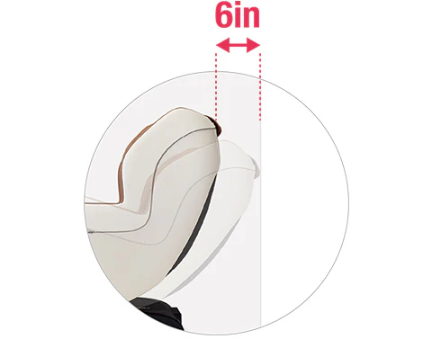 The CirC+ requires under 6inches of space behind the chair (15cm) when fully reclined. This allows you put the massage chair anywhere in your house you want without worrying about it hitting the wall as it reclines backs.