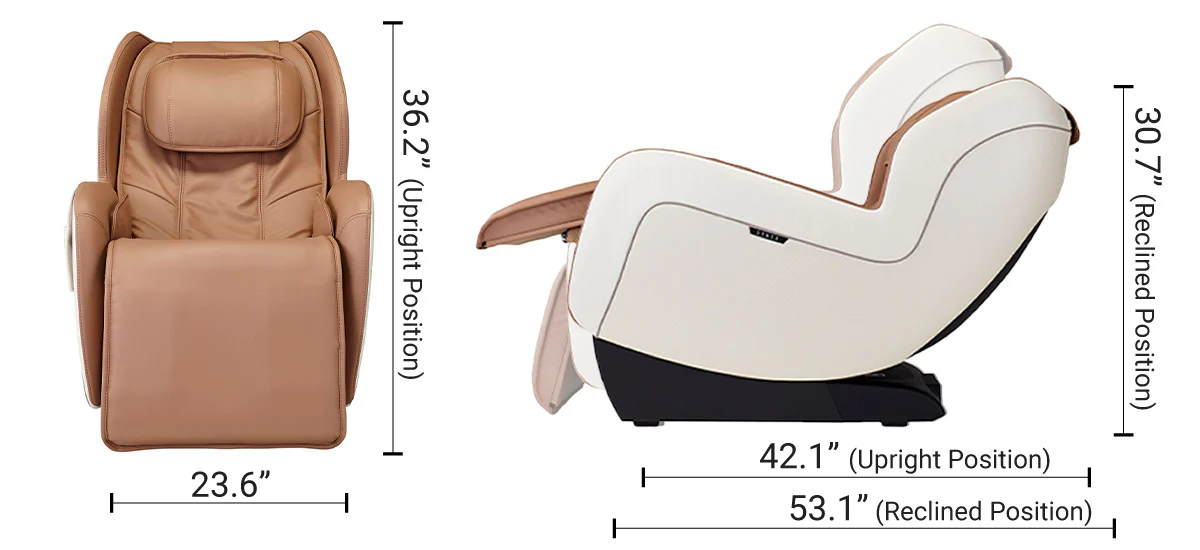 The CirC+ by Synca Wellness brings Japanese “Shibui” design into your home. “Shibui” design is subtly beautiful without being flashy. just like the CirC+. It's modern furniture-like design hides many features like long rail deep tissue robotic massage technology inside in a tastefully designed exterior.