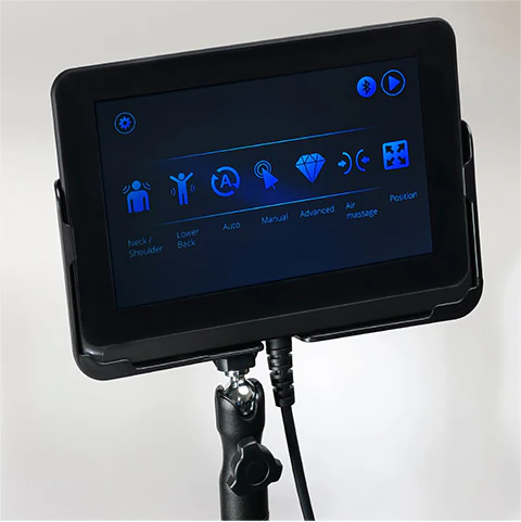 This comprehensive tablet enables control over even the most minute aspects of your massage. Its easy-pivot mount allows you to position it perfectly at any angle. The massage system allows users to navigate 8 Full Body auto programs. 4 neck/shoulder auto programs. 4 lower back auto programs. and 4 manual massage modes for each body part..
