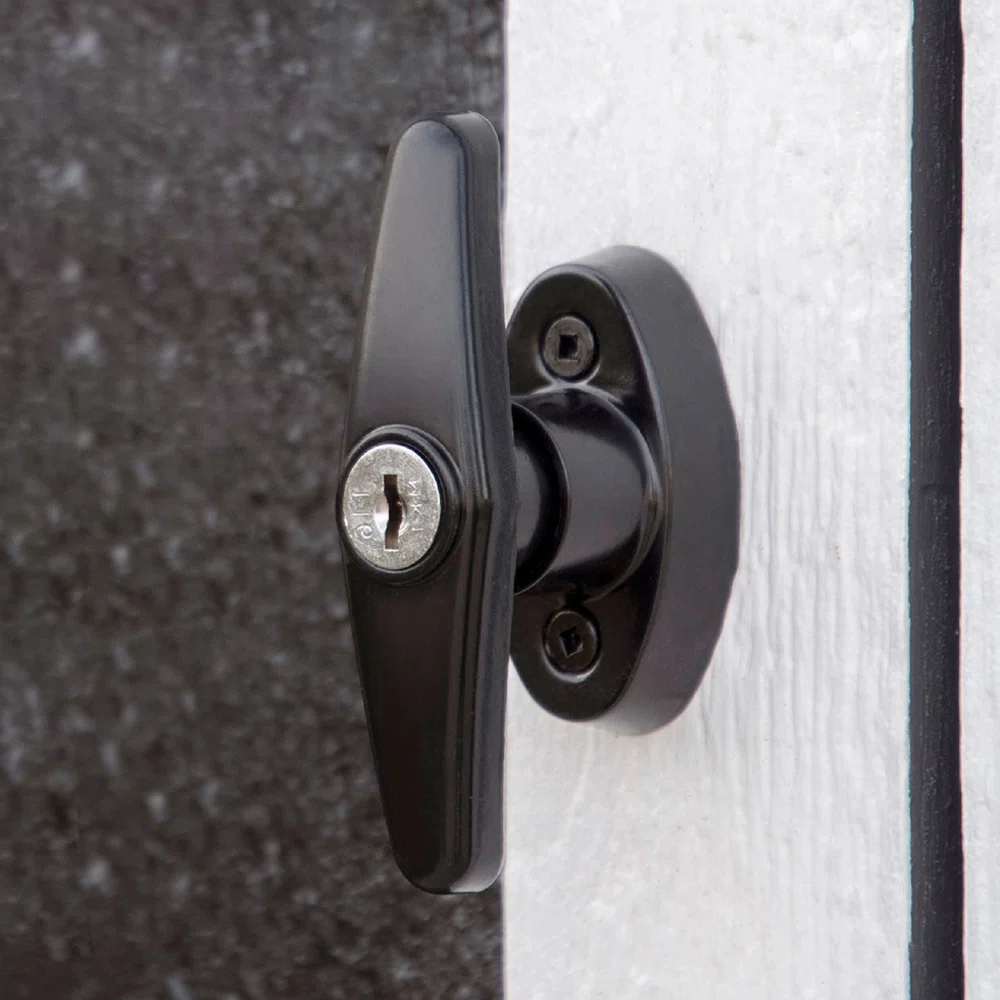 Rust- and corrosion-resistant T-handle provides extra security for your belongings. Includes two keys.